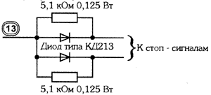 Если цепи управления стоп - сигналами разделены, необходимо применить диодную развязку: