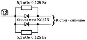 Если цепи управления стоп сигналами разделены, необходимо применить диодную развязку: