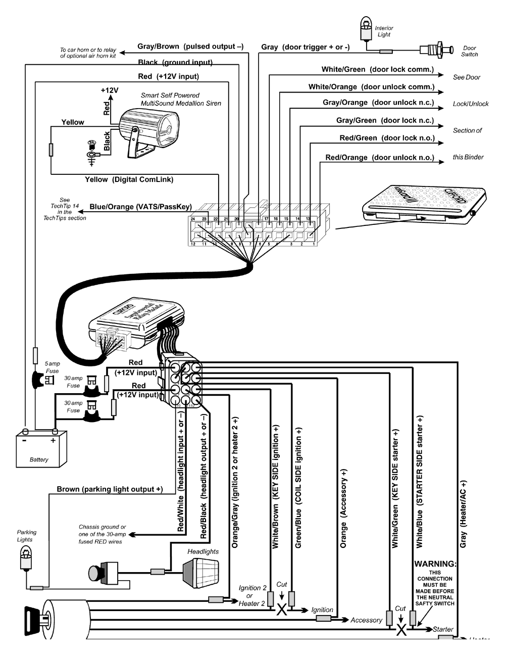 Кодированный режим временного отключения охраны UltraSecure Valet Mode - Гарантирует, что никакой вор или угонщик не сможет отключить систему, как они это делают с системами других производителей. Управление этим режимом значительно упрощено, поскольку нет необходимости "прятать" переключатель Valet. Если злоумышленник попытается ввести код наугад, включится сирена, начнут мигать габаритные огни, двигатель будет выключен (если он был включен при помощи передатчика), а стартер и зажигание заблокируются. При этом, система временно блокирует дальнейший ввод кода, поэтому, даже, если злоумышленник и подберет код, система его не воспримет. Разъемы позволят вам легко и просто выполнить все необходимые соединения.