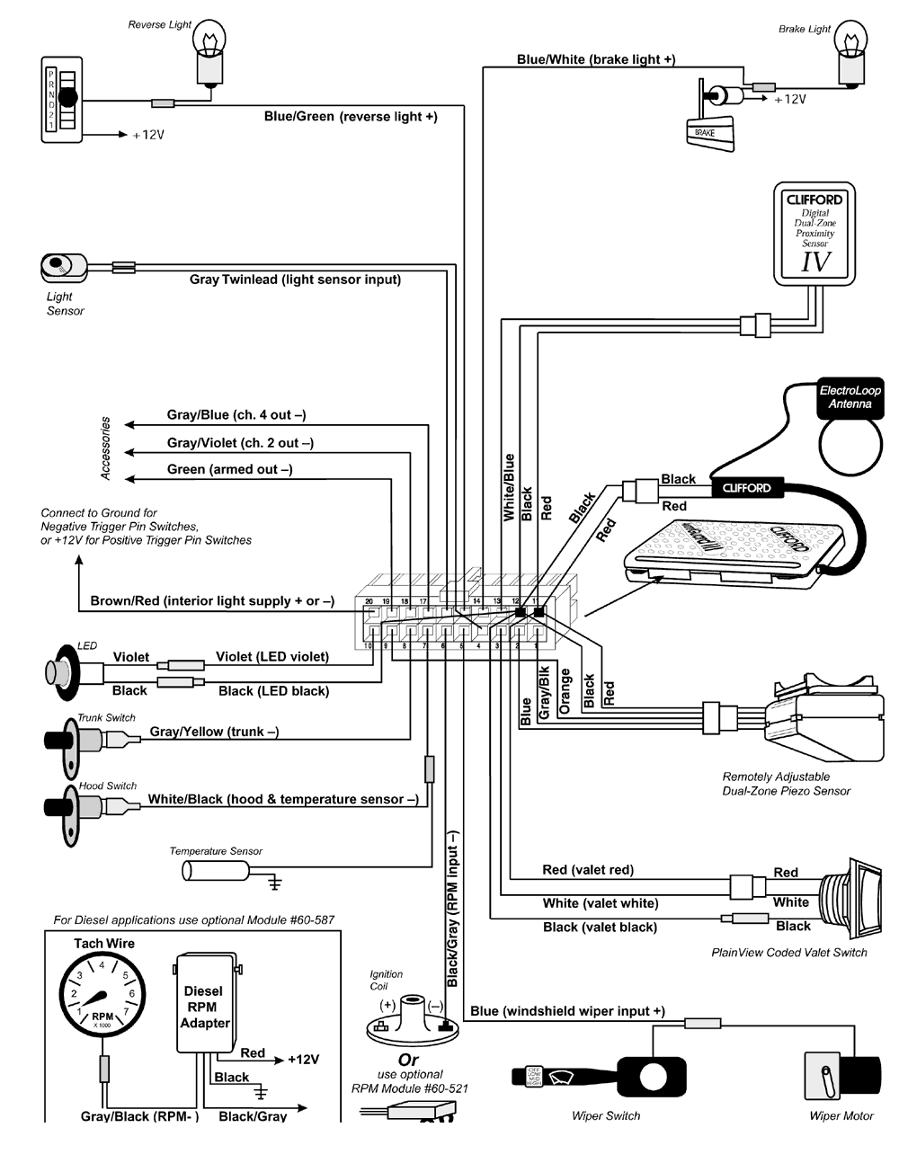 Патентованная схема запоминания кода передатчика - Позволяет владельцу добавлять в память системы при помощи переключателя Valet до четырех различных 16-канальных передатчиков фирмы Клиффорд. Также легко код потерянного или украденного передатчика может быть стерт из памяти системы.