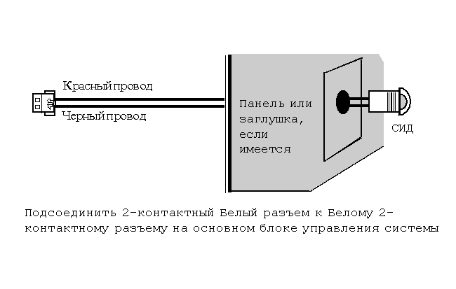 КРАСНЫЙ СИД состояния визуально информирует Вас о состоянии охранной системы в любой момент времени и служит предупреждением для злоумышленников о наличии охранной системы в автомобиле. Установите КРАСНЫЙ СИД в месте, доступном для обзора водителя изнутри и снаружи. Оптимальным местом для его размещения может быть либо середина панели приборов, либо другое место ближе к водителю, в зависимости от типа автомобиля.