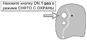 Чтобы поставить систему на охрану (взять автомобиль под охрану), необходимо нажать и отпустить кнопку ON брелока.
