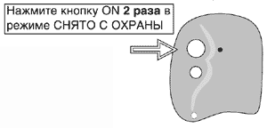 Для того, чтобы поставить систему на охрану с отключением датчика удара и дополнительного датчика, необходимо закрыть все двери, нажать и брелока. Система подаст один звуковой и один световой сигналы. Не более чем через 3 секунды еще раз нажать и отпустить кнопку ON брелока. Система повторно подаст один звуковой и один световой сигналы и перейдет в режим ОХРАНЫ с отключением датчика удара и дополнительного датчика.