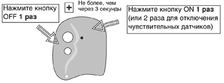 Чтобы поставить систему на охрану без звукового подтверждения, необходимо нажать и отпустить кнопку OFF брелока, не более чем через 3 секунды нажать и отпустить кнопку ON. Система подаст один световой сигнал. Зажигание заблокируется. Если установлены и подключены приводы замков дверей, кнопки дверей опустятся. Система перейдет в режим ДИАГНОСТИКИ датчиков.