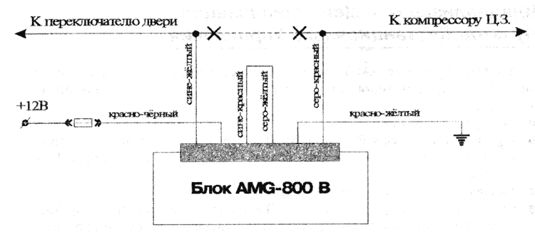 подсоединить желтый провод к земле, зеленый - к дверному проводу между дверными концевыми выключателями и салонным светильником, на котором при открывании дверей появляется земля. Проверьте, чтобы выбранный провод был подключен ко всем дверям автомобиля.