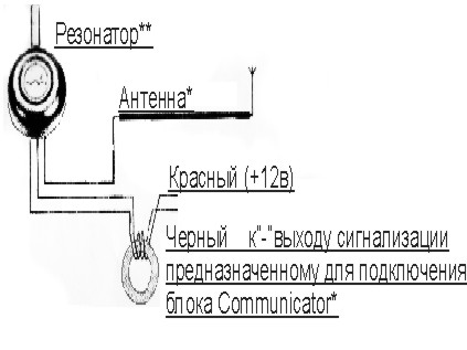 ** При установке модуля запросчика-передатчика, Резонатор следует ориентировать вертикально и направить вверх или вниз, в зависимости от места установки блока запросчика-передатчика.