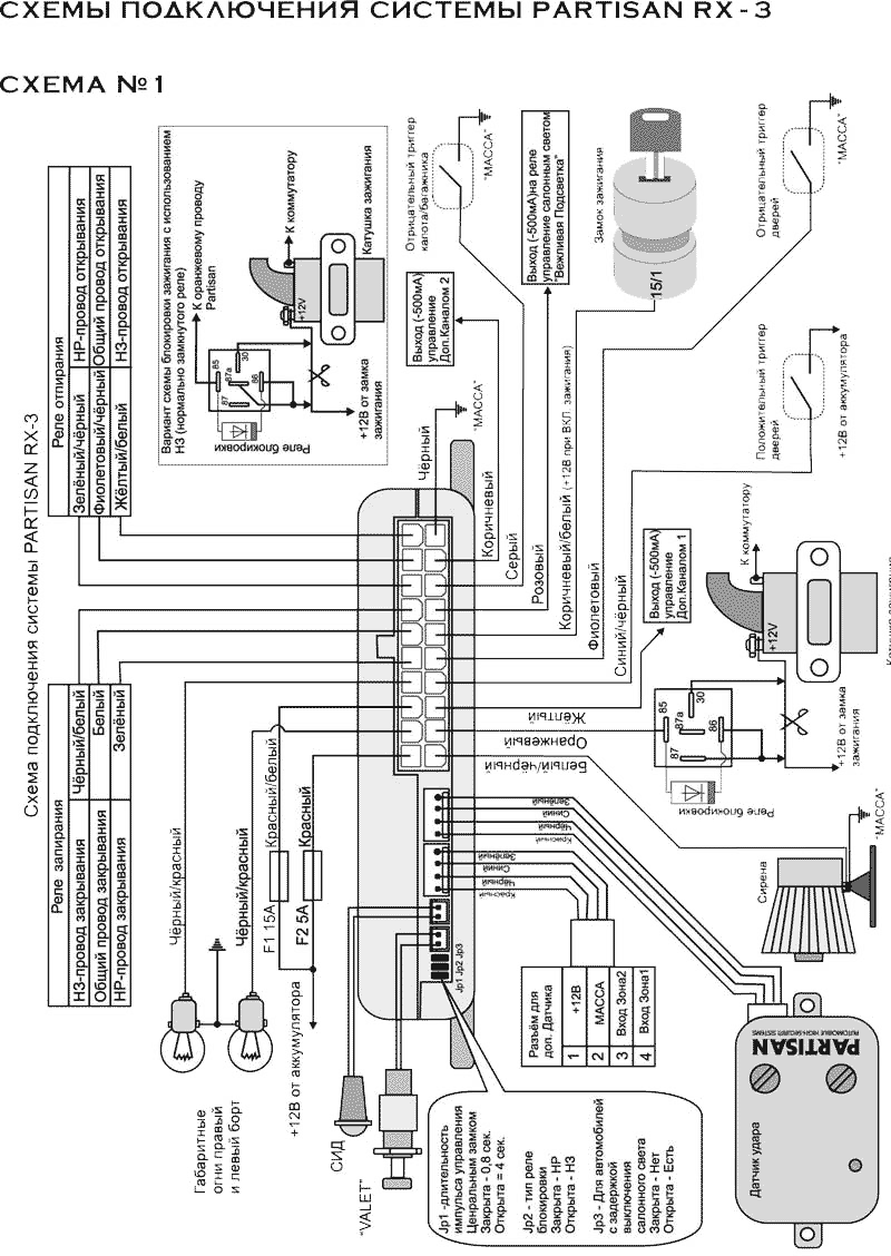Автомобильная сигнально-противоугонная система PARTISAN RX-3, предназначена для оповещения владельца автомобиля звуковыми сигналами сирены или с помощью пейджера (в комплект не входит) в случае удара по автомобилю, проникновения в машину, или попытки угона. Система PARTISAN RX-3 предотвращает запуск двигателя при попытке угона с помощью внешнего (внешних) реле блокировки, а так же способна остановить двигатель в случае разбойного нападения на владельца автомобиля (функция Super Car Jack). Система PARTISAN RX-3 обладает широким перечнем сервисных функций, позволяющих сделать максимально удобным и безопасным Ваше общение с автомобилем. Система PARTISAN RX-3 может быть установлена на любой автомобиль с напряжением бортовой сети 12 Вольт и может работать во всех климатических зонах.