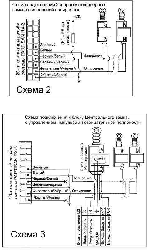| Фиолетовый/чёрный | Выход Общий провод контакт реле отпирания замков (кон.№30) |