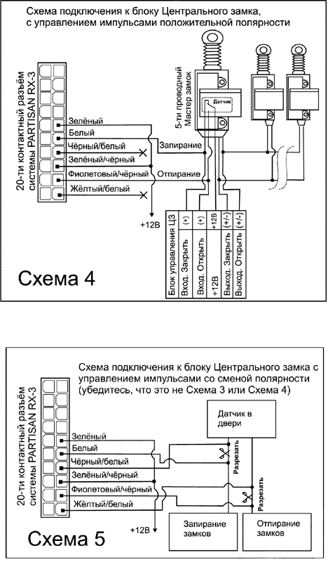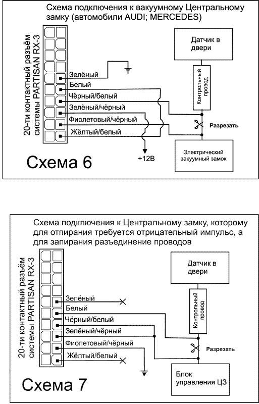 | Белый/чёрный | Выход на сирену. (Сигнал +12В 15А.) |