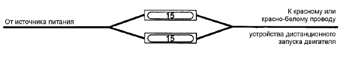 В обязанности мастера-установщика входит определение нагрузки электрических цепей автомобиля при работающем двигателе и выбор правильного номинала предохранителей, которые должны быть установлены на провода подачи питания. Если ток в электрической сети автомобиля при полной нагрузке (работает кондиционер, электродвигатель нагнетательного вентилятора отопителя и другие дополнительные устройства) превышает 24 А, рекомендуется установить в каждую цепь питания два предохранителя. Мы рекомендуем использовать два предохранителя с держателями, подключив их параллельно в провода питания, как показано на рисунке ниже. При параллельном подключении необходимо использовать предохранители, каждый из которых рассчитан на ток 15 А.