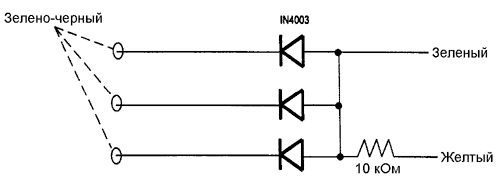 Используемая в данном методе схема подключения приводится на рисунке ниже. Из нее следует, что потребуется немного изменить подключение выключателя устройства дистанционного запуска двигателя и установить дополнительный диод серии 4000. На схеме показана типовая входная цепь электронного модуля управления положениями PARK/NEUTRAL автомобиля "Дженерал Моторс". Для подключения устройства дистанционного запуска двигателя автомобиля Audiovox к входу электронного модуля управления положениями PARK/NEUTRAL автомобиля "Дженерал Моторс" проделайте следующее.