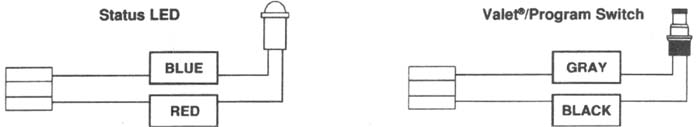These plug into the module. The Status LED plugs into the small two-pin socket, while the Valet/Program Switch should be plugged into the larger blue two-pin connector. The Status LED fits in a 9/32" hole.