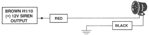 H1/10 BROWN (+) siren output: Connect this to the red wire of the 514T Revengertm siren. Connect the black wire of the siren to (-) chassis ground, preferably at the same point you grounded the control module's H1/8 BLACK wire.
