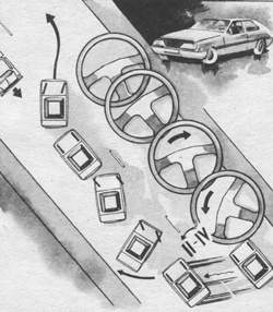 “12—4”;продолжить вращение рулевого колеса левой рукой вправо до положения