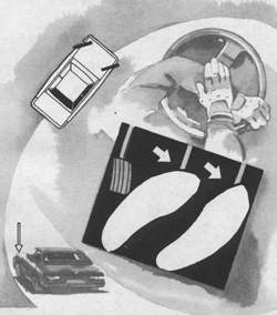 Чтобы застраховаться от неожиданного сноса передних колес в длинном скоростном повороте, раздробите дугу на короткие отрезки и микроповороты. Вы получите возможность одну большую опасность разделить на серию мелких, каждую из которых легче преодолеть. Метод дробления дуги позволит многократно воспользоваться приемами самостраховки (передняя и боковая загрузки, плавное торможение, боковое соскальзывание) и уменьшить отрицательные эмоции, связанные с потерей устойчивости и управляемости автомобиля. |