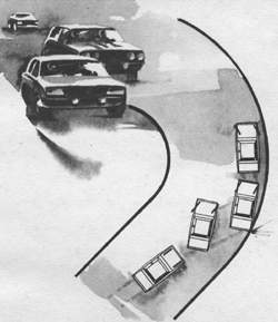 Перевод автомобиля на “упор после скольжения”Одним из эффективных приемов торможения на дуге обледенелого зимнего поворота является “упор после скольжения”