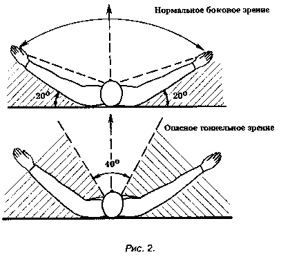 Некоторые люди имеют так называемое тоннельное зрение. Они могут видеть только в пределах угла не более 40°. Это чрезвычайно опасно при вождении, так как обстановка по бокам автомобиля остается вне поля зрения. Компенсировать недостатки бокового зрения можно за счет повышения внимательности и осторожности при проезде участков, где возможно неожиданное появление опасности сбоку. Это выезды со двора, пересечение дорог, места, где пешеходы переходят дорогу. Если у вас плохое боковое зрение, наблюдайте за местами, где возможно появление опасности сбоку, с помощью поворота головы, а не краем глаза.