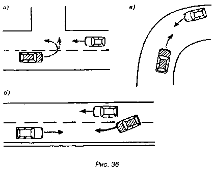 1.3 Встречное транспортное средство на повороте выезжает на полосу вашего движения (рис. 36, в).