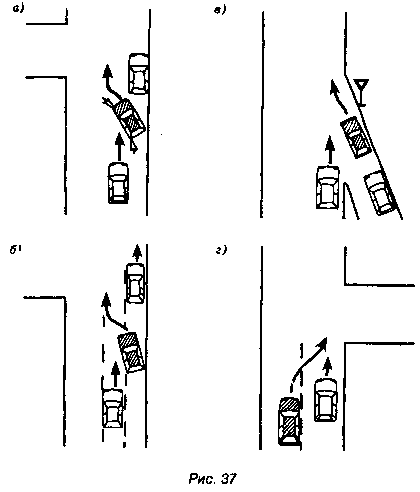 2. Конфликты с транспортом, перестраивающимся на полосу вашего движения с соседних рядов (рис. 37).