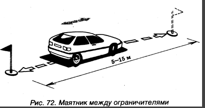 Водитель с заданного расстояния (между ограничителями) начинает движение,