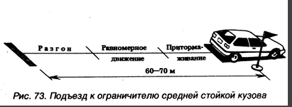 2. Подъезд к ограничителю средней стойкой кузова (рис. 73).