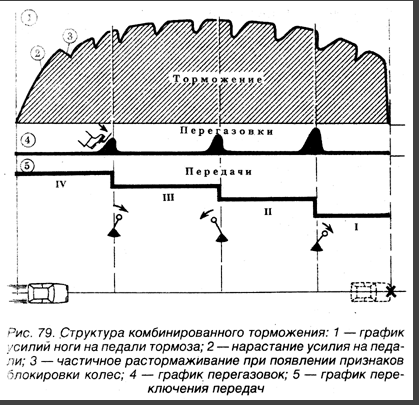 торможение (рис. 79), когда, кроме импульсной работы педалью тормоза (ступенчатое