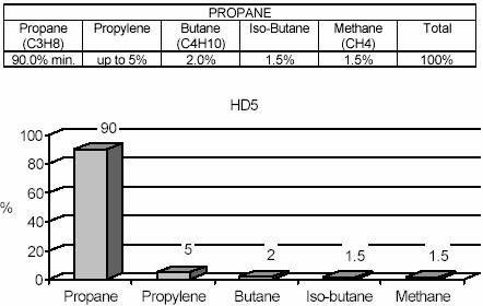 LPG is liquefied petroleum gas commonly known as propane (C3H8), a combustible hydrocarbon based fuel. It comes from the refining of crude oil and natural gas. At normal pressure and temperatures above -44F Propane remains in it's gaseous form. At lower temperatures and/or higher pressures propane will become a liquid. Propane is colorless and odorless. For safety reasons propane is required to be odorized as to indicate positively, by distinct odor, the presence of gas in air down to a concentration of not over 1/5th the lower level of flammability 0.4% in air. This is achieved by adding 1.0 lbs of ethyl mercaptan, or 1.0 lbs of thiophane, or 1.4 lbs of amyl mercaptan per 10,000 of liquefied petroleum gas. There are currently three grades of propane available, HD5 for internal combustion engines, commercial propane and commercial propane butane mix for other uses. The exact composition of propane varies slightly between different parts of the country and different refineries. Compared to gasoline the energy content of LPG is 74%
