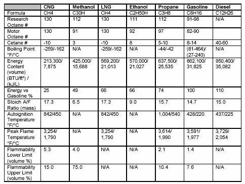 Energy content per unit of fuel (energy density) is an important factor affecting range and power output of internal combustion engines. The following chart compares the energy content of alternate fuels to gasoline.
