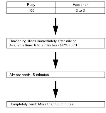 - NOTE: Be sure to mix the correct amount of the hardener and softener.