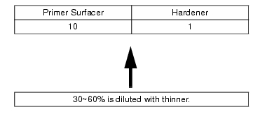 - Use the 2-component type primer surface (gray) and a spray gun.