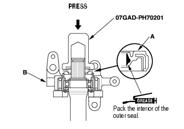 Driver 07749-0010000 Attachment, 52 x 55 mm 07746-0010400 Attachment, 35 mm I.D. 07746-0030400 Oil seal driver 07GAD-PH70201 NOTE: Refer to the Exploded View as needed during this procedure.