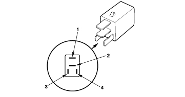 There should be continuity between the No. 1 and No. 2 terminals when power and ground are connected to the No. 3 and No. 4 terminals. There should be no continuity between the No. 1 and No. 2 terminals when power is disconnected.