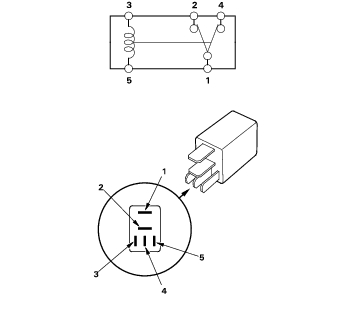 There should be continuity between the No. 1 and No. 2 terminals when power and ground are connected to the No. 3 and No. 5 terminals. There should be continuity between the No. 1 and No. 4 terminals when power is disconnected.