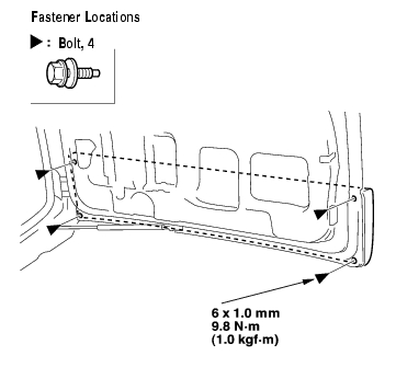 - Open the tailgate, then remove the bolt securing the tailgate lower trim.