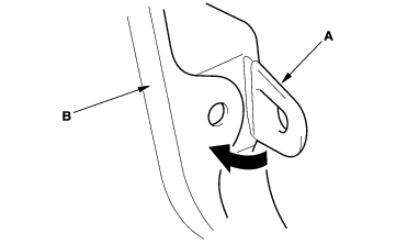 - Before installing the clips of the door upper and lower portions, install the front fender fairing (A) to the front fender (B) properly as shown.