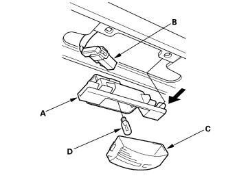 - Turn the bulb socket (A) 45° counterclockwise to remove the bulb.