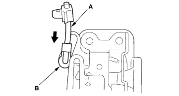 - If equipped, detach the hood latch switch connector (A) and the harness clip (B) from the body, and disconnect the connector.