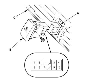 - Push out the hazard warning switch from behind the center panel (C).
