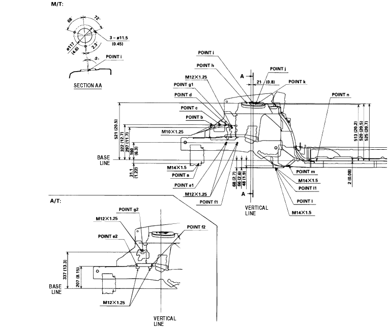 Locating hole Right side: Ø13 (0.51)/Left side: Ø15 (0.59)