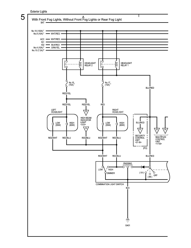 Exterior Lights (With Front Fog Lights, Without Front Fog Lights or Rear Fog Light) (cont'd) 78-19