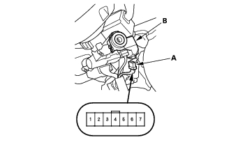 - Check for voltage between the immobilizer control-unit receiver 7P connector No. 4 terminal and body ground with the parking brake lever pulled, then released.