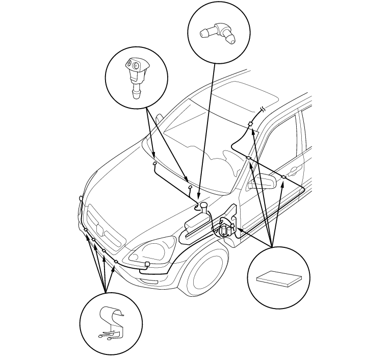 - Remove the windshield washer nozzles and clips, then remove the tubes.