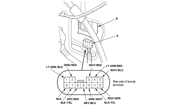 - Disconnect the 4P connector (A) from the wiper motor (B).