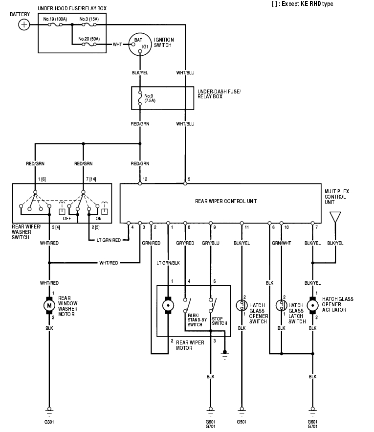 Lock Function: The rear window wiper will not operate if the hatch glass is open.