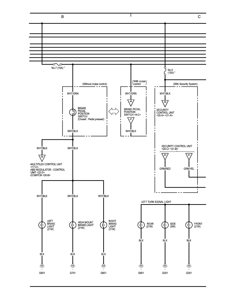 Exterior Lights (Back-up Lights, Brake Lights, Turn Signal/Hazard Flasher) (cont'd) 78-36