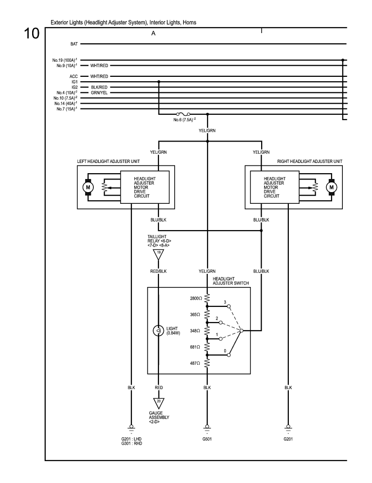 Exterior Lights (Headlight Adjuster System), Interior Lights, Horns (cont'd) 78-39 |