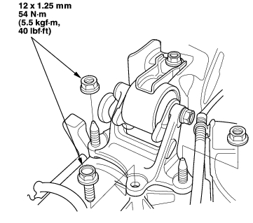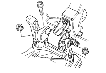 - Tighten the transmission mount bracket support bolt/nuts.