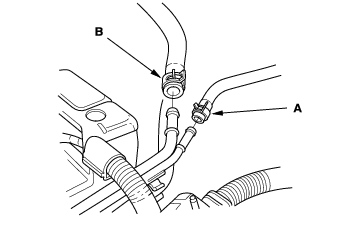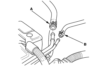 - Remove the Evaporative Emission (EVAP) canister hose (A) and brake booster vacuum hose (B).