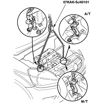 - Position the engine under the vehicle. Attach the chain hoist to the engine, then lift the engine into position in the vehicle.