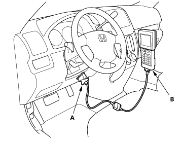 - Disconnect the Honda PGM tester (A) from the DLC (B).